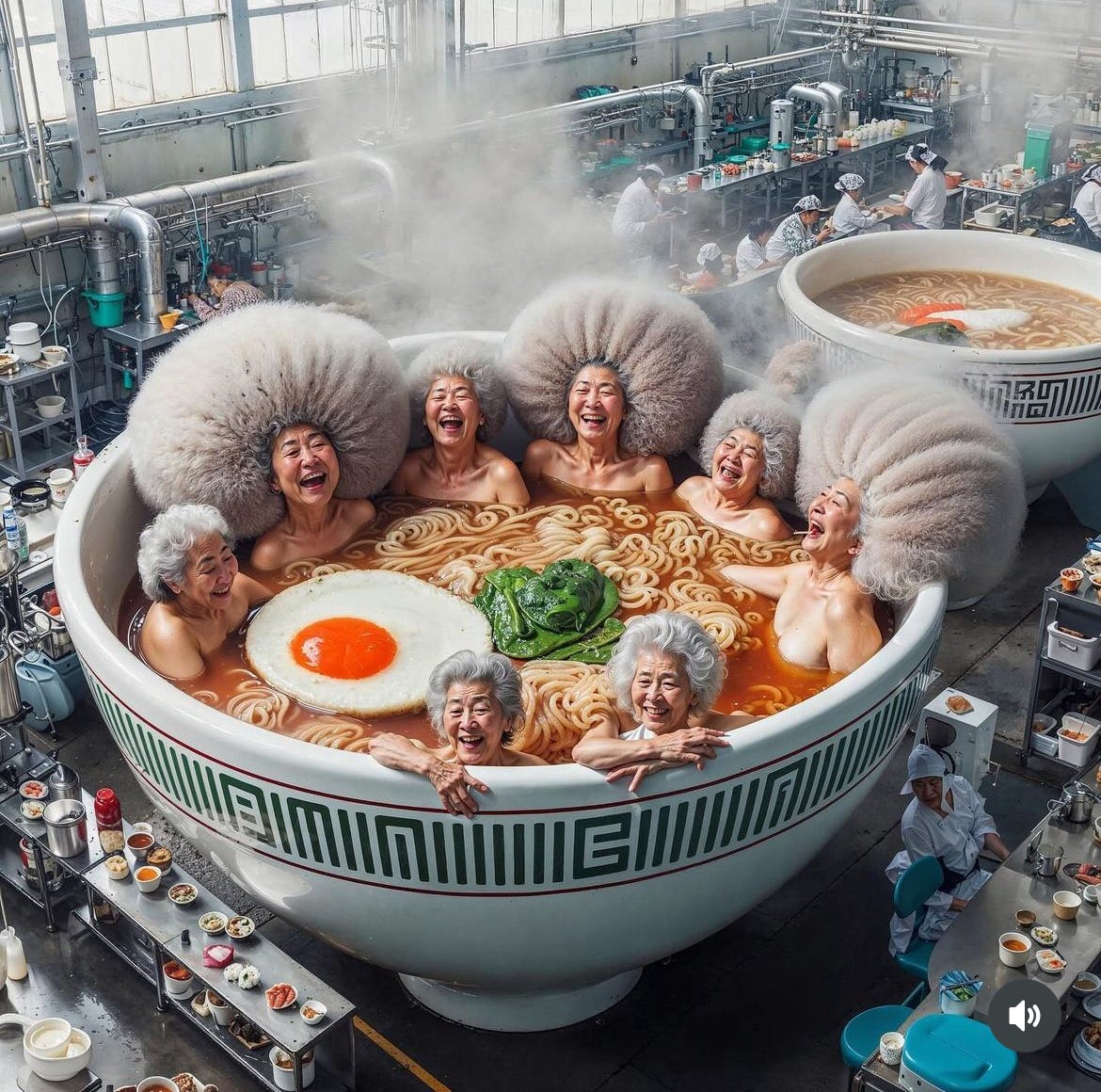 🍣 Und wir bleiben beim Thema. Kennt eigentlich irgendwer Nice Aunties und das Auntieverse auf Instagram noch nicht? Um es kurz zu machen: Es ist ein AI Kunstprojekt, das sich freundvollem Altern widmet. Man weiß nicht genau, wie Menschen auf sowas kommen, aber lustig ist es..